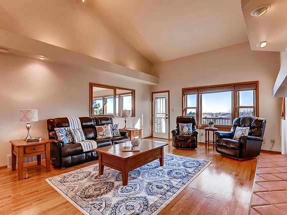 Views! Beautiful 2-story custom home with mountain and city views sits atop professionally landscaped lot with sprinkler system on cul-de-sac w/in walking distance of award winning school. Grand entryway opens to vaulted ceilings in living area with tiled fireplace. Hardwood floors throughout living area lead you into bright kitchen w/ island, all granite and stainless steel. Kitchen opens to huge dining area adjacent to tiled sun room. 2 decks! One located off living area, second one off sun room/kitchen. Both made of low maintenance composite. Spacious master bedroom upstairs w/ newly remodeled master bath. Double sinks, granite, travertine, custom wood cabinets, large walk-in shower w/ frameless glass doors, heated floor, and walk-in closet. Loft w/ vaulted ceilings off master bedroom. Finished basement with wet bar, 2 more bedrooms plus another full bath and large laundry room. Bonus/craft/wine room with wine cellar. Family room in basement has convenient gas fireplace for cold winter nights, and another sun room! Walk-out basement to landscaped back and flagstone patio for more entertaining options! Large windows and tall ceilings make this home light and bright! In home humidifier, ceiling fans, AC, extra large hot water tank. Come watch the fireworks from your new deck! Neighborhood Description Quiet, family friendly, near trails and park, walking distance to public transportation, near public pool, walk to Chipeta Elementary, bike to Garden of the Gods