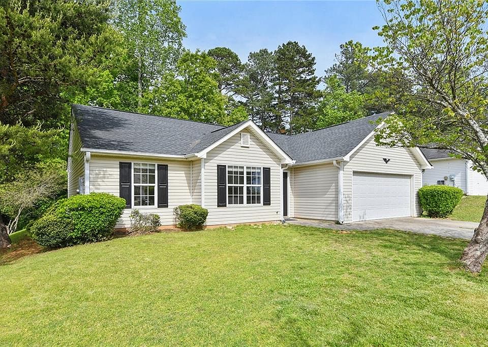 Fully updated ranch ready for move in! Fresh paint, new flooring, new light fixtures, plus newer roof & systems! Gorgeous kitchen w/new white shaker cabinets, new granite, new dishwasher, new vent hood & new sink/faucet. Kitchen opens into the vaulted family room with luxurious fireplace & view of tree lined backyard. Roommate floor plan, private master retreat w/walk in closet, updated baths w/new vanities, mirrors, lighting & flooring. Plus a large deck that's perfect for entertaining! Walking distance to Downtown Sugar Hill w/shops, restaurants & entertainment.