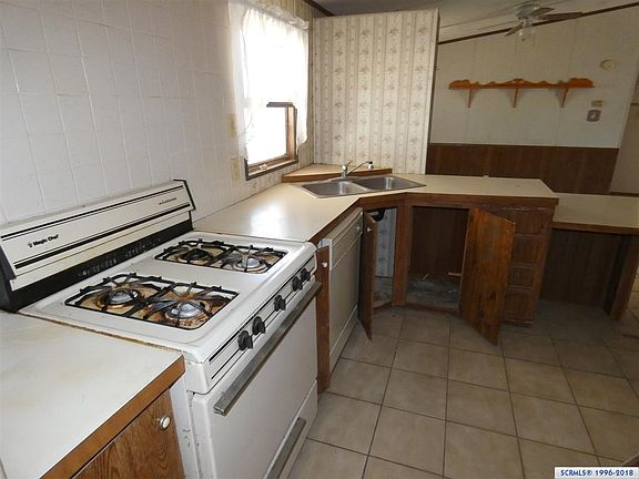 Manufactured home with brick siding, detached garage, 5 acres of flat usable land west of town.