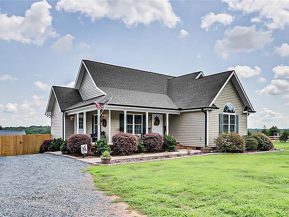 This cute as a button home has everything you need! The open floor plan has a living/kitchen/dining area with a vaulted ceiling and beautiful wood floors. Sit on the wrap around front porch with a glass of tea or relax in the fenced back yard on your deck. Cool off in the pool or unwind in the gazebo. Great for entertaining! The handy storage building will remain. The primary bedroom also has a vaulted ceiling, and the bath has a walk-in shower. **Offers must be submitted by 5 PM Saturday 8/28/21**