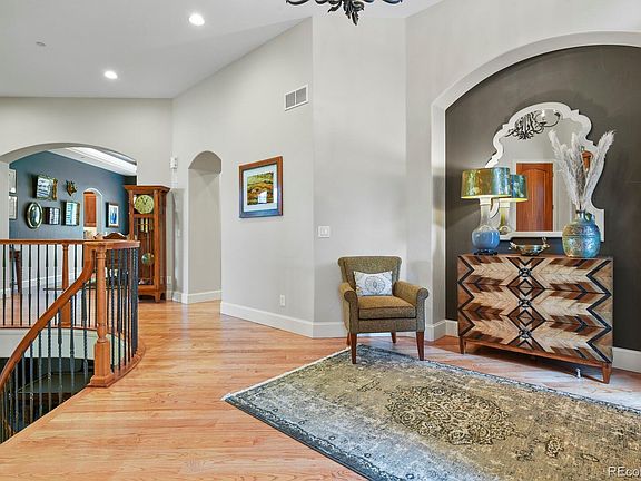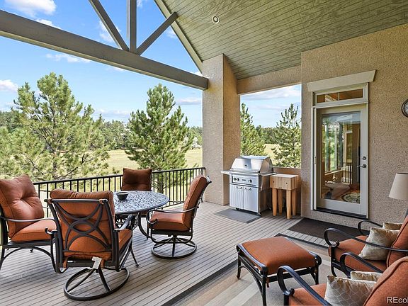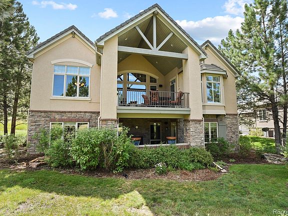 Elegant ranch walk-out low maintenance patio home in gated golf course community, The Village at Castle Pines. Private security. Quiet, end of cul-de-sac location. 3 car garage. Master, guest suite, den/office, powder rm, dining room and laundry all on main level. Walking distance to tennis, rec center, pool, fitness. Exceptional curb-appeal. Indulge your passion for cooking with a gourmet kitchen equipped with newer Wolf double oven, Sub-Zero refrigerator and Cove dishwasher. Island with quartz counter-to. Access to covered deck from kitchen and owners suite. Cherrywood cabinets throughout, granite counters and walk-in pantry. 4" hardwood on main level. Master bath w/huge enclosed shower, jetted tub and custom walk-in closet. Lower level family room with see-thru fireplace to covered enclosed patio, Media room with new projector. Quality that can't be matched, meticulous maintained. Home is engineered for a retrofit elevator option. Showing start Sunday .(Driver's License or Photo ID are required at the gate)