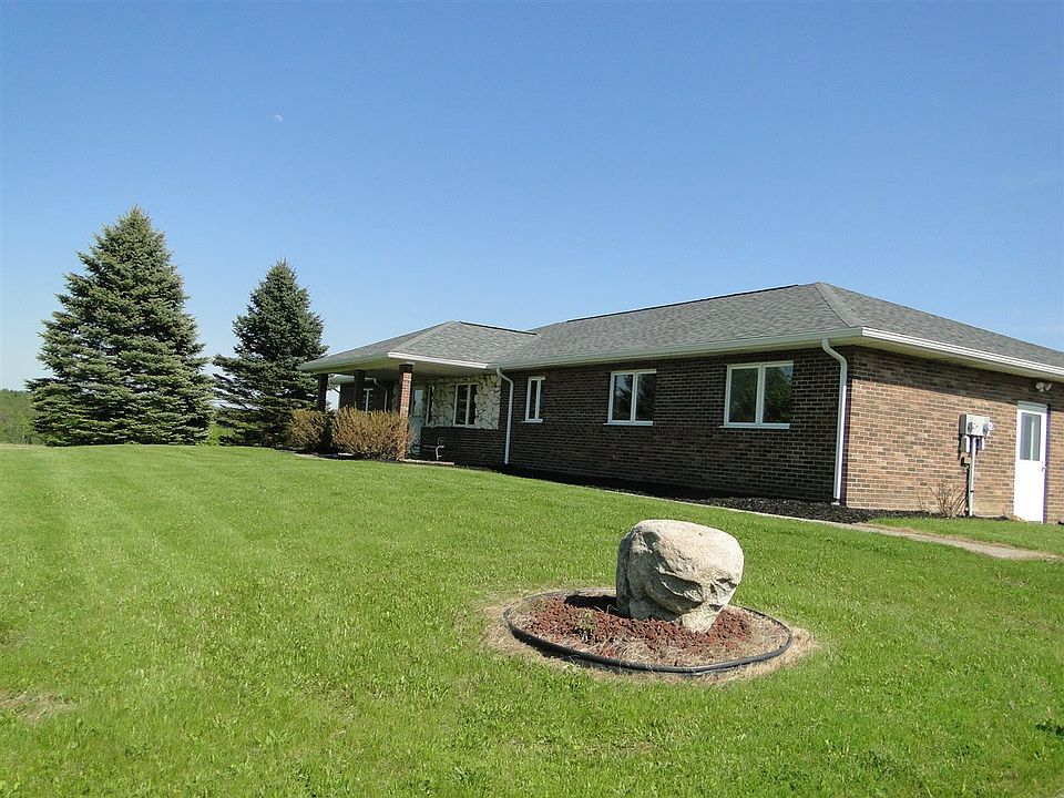 Well built all brick ranch on 7 acres in the country! Built in 1993, this energy efficient home features Geo-Thermal heating System (5 yrs old), walk-out basement, casement windows, and is well insulated. All the rooms are spacious with 36 inch interior doors throughout for handicap friendly accessibility. Fresh carpet and paint, new kitchen counter tops and dishwasher, 26x36 attached garage! 2 very large bedrooms, first floor laundry, den, and 1.5 baths on the main level. Lower level walk out basement has a full bath. Very nice home!