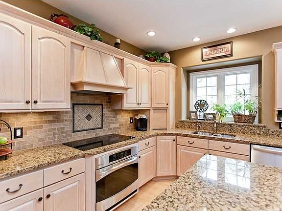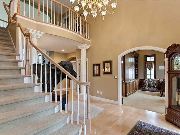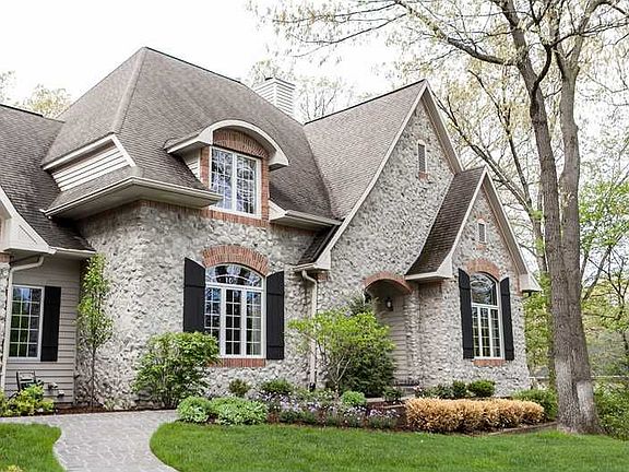 Old world stone, brick detailing, and wood siding give you all of the charm of a Country French Manor. This home is nestled in heavily wooded lot in the desirable neighborhood in NE Oak Wood addition. All new driveway and stone front sidewalk were done 2013. Also new carpet on 1st and 2nd floors in 2012 plus upgraded stainless appliances and granite in 2012. Trek deck and expansion of deck added in 2011.New furnace in 2010. Besides all of these upgrades this home has a 19x23 great room with a 2 story arched ceiling over 22 feet tall ceiling with large picture window. A bowed balcony overlooks the foyer and great room. Beautiful crown molding throughout the first floor. Crystal Keyline maple cabinets with lymed finish in kitchen and maple floors. Beautiful off white cabinets in great room. Main floor master and 3 bedrooms up. Lower level has a theatre room with extra large projection TV. Must see to appreciate.