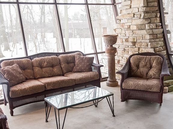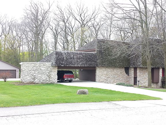 If you are inspired by Frank Lloyd Wright then this beautiful home is full of inspiration. As you enter this home you will be greeted by a massive architectural stone wall that will take your breath away. Follow the beautiful stone work as it engulfs the natural fireplace and works it way in to the 3 season rm. Spacious open concept floor plan includes dining area, living rm, kitchen with Corian counters, family rm. Master with on-suite bath, a walk in dressing room is a must see. 2 add. large bdrms. Finished lower level fireplace. Beautiful deck, 3 car detached Grg. Carport, add lot included.