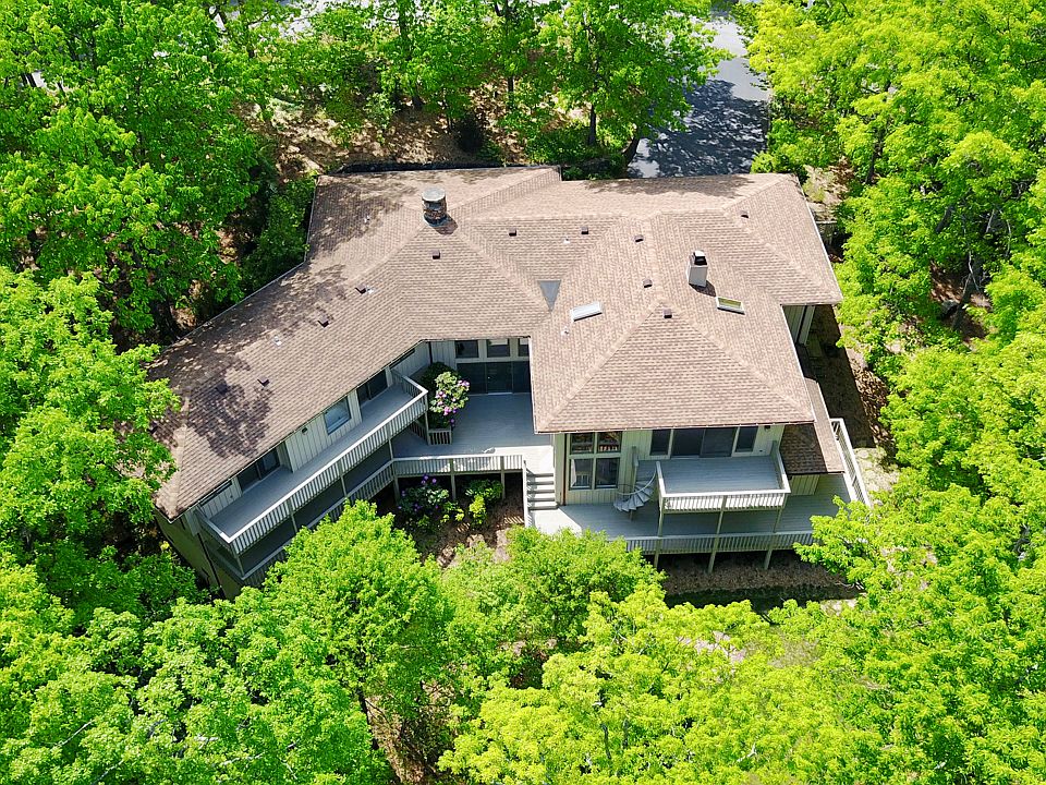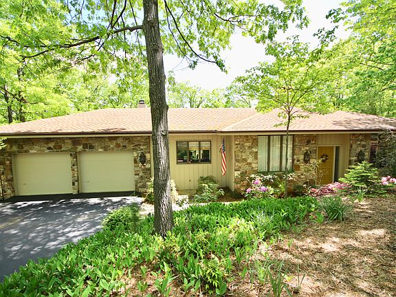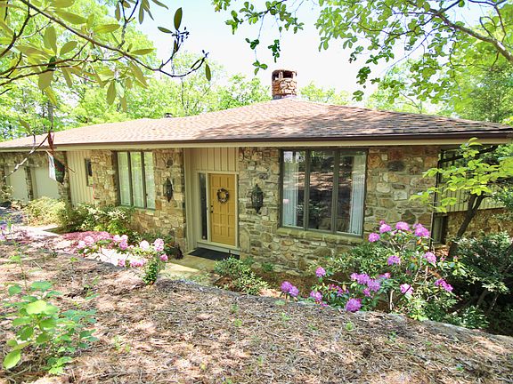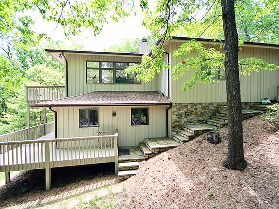 Sprawling Contemporary located on a wooded 2.35 Acre lot in Hunting Hills backs up to the Blue Ridge Parkway. It features Cypress & Stone siding, Andersen windows & sliding patio doors. 10' Ceilings, Dining Room, Kitchen w/tile counters & backsplash, Breakfast Area overlooking Living Room, Sunroom Addition w/full view windows, built-ins & storage, FP, skylights, sliders to Deck; Lower Level offers Rec Room w/sliders to lower deck, Office/Craft Room w/Built-In Counters, Work Room w/Built-In Cabinets; Full Bath; Upper Level offers Master Bedroom w/HW Floors, W-I Closet, Master Bath w/tile floor, dual vanities, jetted tub, Office w/built-ins, 2 additional BR's, 3rd Full Bath; Circular Stone Fireplace opens into Living Room w/wet bar, 4th BR w/Ensuite. Open concept ideal for entertaining.