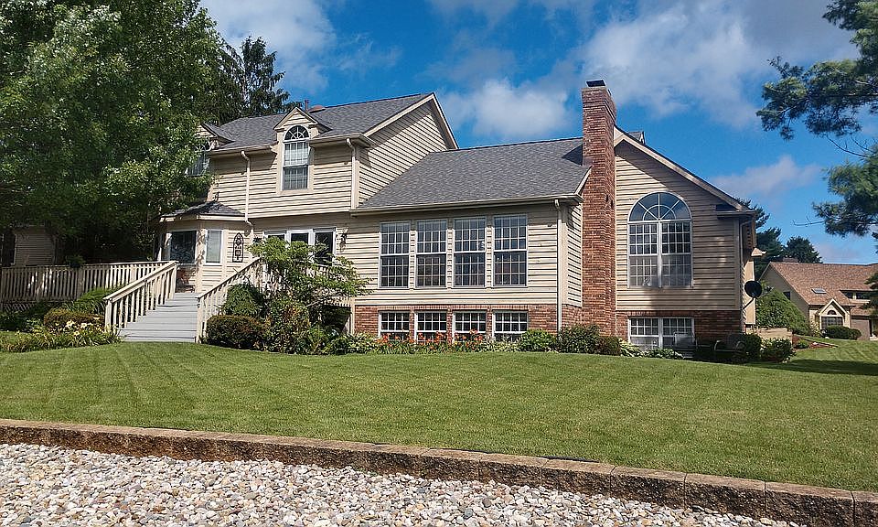 WOW if you want breathtaking water views this is the home! 5 bedroom, 3.5 bath home in beautiful Qual Ridge Subdivision. Entire back of home including finished lower level is full of windows overlooking the water. You will love the 2 story foyer overlooking the huge family room. This Century built and former Panorama home offers a main level master with office and/or sitting room. Large kitchen with granite counters opens to large wrap around deck. Enjoy the fire pit area just off the deck! Extremely large finished lower level with almost 1400 sq. ft of living space offers 2 family room/sitting areas, rec area, brick wall fireplace, 5th bedroom, full bath and a wet bar area. This amazing basement still has ample storage space! New tear off roof and 2 new skylights are only 9 months old. Newer HVAC system in 2016. Two water heaters with one new in 2020 and the other 2015. Refrigerator, Dishwasher, and Microwave new 2018. Whole exterior of home recently painted. **NIPSCO average$58/month, AEP average $215/month