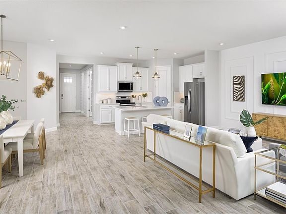 Pre-Construction. To be built. Welcome to the Glades with a Coastal Elevation. This stunning home located in the sought-after gated community of Windwater in Parrish, FL. This exceptional property offers 2,005 square feet of elegant living space, featuring 4 bedrooms, 3 full bathrooms, and a 2-car garage. As you step inside, you'll immediately notice the open and inviting floor plan, 8' door throughout. Enhanced by the beautiful 7x22 70/30 stagger tile that flows through the main living areas and secondary bedroom. The kitchen is a chef's dream, showcasing 42" Barnett Duraform Linen cabinets. Exquisite Carrara Breve quartz countertops, providing both functionality and style. All appliances are included. The spacious master suite offers a peaceful retreat with a well-appointed en-suite bathroom, complete with dual vanities, and a super walk in shower. The additional bedrooms are thoughtfully designed to provide comfort and privacy for family members or guests. Outdoor living is equally impressive, with a covered screen in lanai with Sliders perfect for entertaining or simply enjoying the serene surroundings. The expansive backyard offers plenty of room to add a pool, creating a tranquil and picturesque setting with that has no rear neighbors for privacy. Windwater is a beautiful community that combines the charm of suburban living with convenient access to schools, parks, shopping, and dining. With its location, you're just a short drive away from the vibrant cities of Tampa and Sarasota. Photos, renderings and plans are for illustrative purposes only and should never be relied upon and may vary from the actual home. Pricing, dimensions and features can change at any time without notice or obligation. The photos are from a furnished model home and not the home offered for sale.