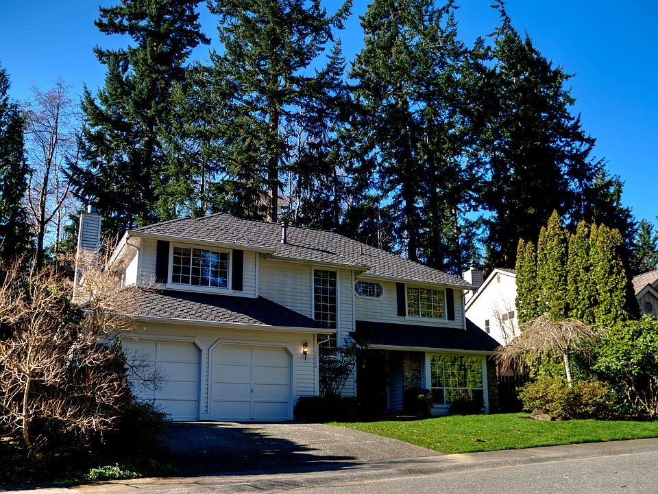 Tranquil green belted setting for this Discovery Crest 2 story. Newer roof, carpeting and gas furnace with cedar siding for maintenance free issues. Formal living and dining + eat in island kitchen. Family room with custom book shelving and fireplace. Huge bonus/media room on upper level. King-size master with walk-in closet, full size shower and soaking tub. . Large 462 sf double garage. Great Schools including Endeavor elementary. Minutes away to golf, shopping, ferries.