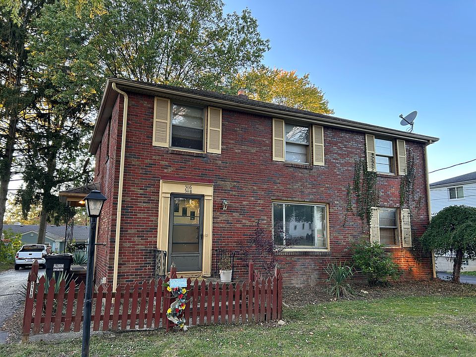 Solid brick duplexTwo car detached garageAmple parking spaceDeck in backyard