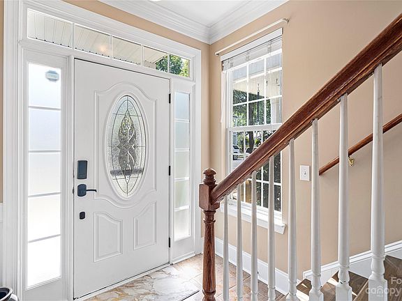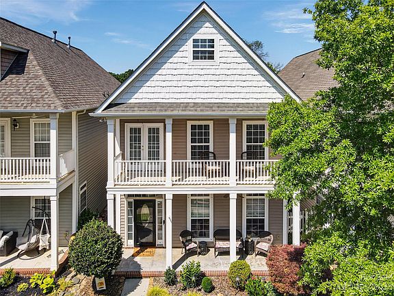 Discover Charleston charm at Bonterra Village, a unique equestrian-themed neighborhood in Indian Trail! Enjoy the tree lined streets and amenity-rich neighborhood benefits, while still within an easy commute to Charlotte. This attractive home has double front porches and is full of curb appeal. The main floor includes a large great room w/new carpet, leading to a dining room with architectural details. The open kitchen boasts newer stainless appliances and a handsome breakfast bar to gather around. The cozy office space off the kitchen provides a quiet work area with built-in shelving, and the laundry room is fitted with cabinetry and sink. Wood stairs lead up to a grand primary bedroom with French doors leading to the full upper balcony, and adjoins the primary bathroom with tiled and glass shower and garden tub. Bedrooms 2&3 share a uniquely private Jack & Jill bathroom and walk in closets. The 2-car garage features additional insulation, built in shelves, and added HVAC unit.