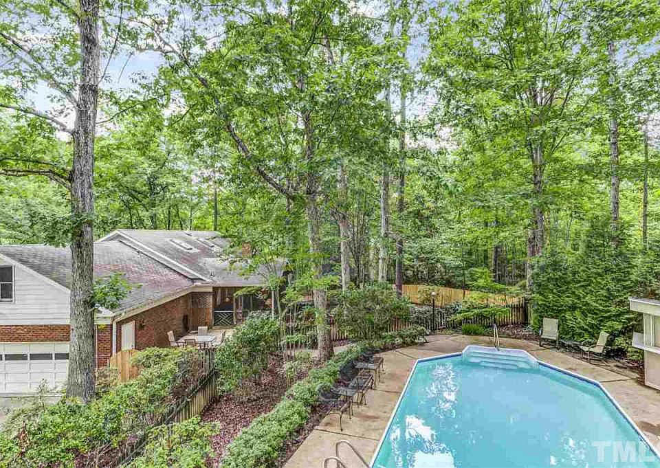 1.5 story that lives like a RANCH 1 mile from CRABTREE MALL with a remodeled kitchen w/ GRANITE counters, soft close cabinets/drawers, & an open concept. A private heated salt water SWIMMING POOL, bar area, FENCED in yard, & SCREENED PORCH are sure to make your summers memorable . The 2nd level boasts a large BONUS room, bedroom, & full bath. Master bedroom & 2 additional bedrooms are located on MAIN level. Gas fireplace, SKYLIGHTS, crown molding, HARDWOODS, & near a GREENWAY that leads to Shelley Lake. Text KIMA to 59559 for more info!
