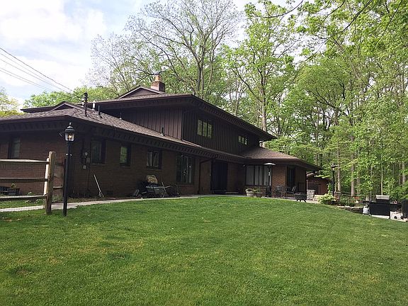 Rare opportunity with this private setting on a wooded ravine lot. Traditional formal Liv rm and Din rm. Fm rm with wet bar and access to expansive deck. First floor master suite, custom den, four spacious bedrooms on second floor. Fin walk-out bsmt to patio and two tier deck. Large front porch, two furnaces and A/C units, Pella windows. Tremendous value.