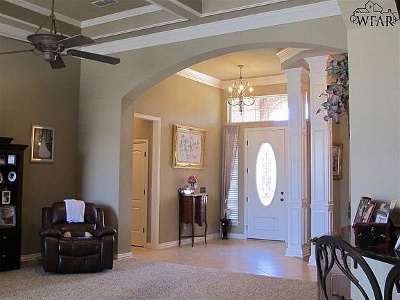 Gorgeous custom 4/3/3 Parade of Homes entry w/wonderful extras, built by Wachsman in 2004. 2,989 SF of stunning design w/12' coffered ceiling treatments, deep crown, quality amenities and exceptional floor plan. Handsome kitchen-breakfast w/granite counters, island, pantries, stainless appliances. Luxurious master suite w/fabulous spa bath and 2 large walk-in closets. Covered patio and salt water pool. Established landscape, multi-level gables, arched windows and brick/stone veneer. Fab...