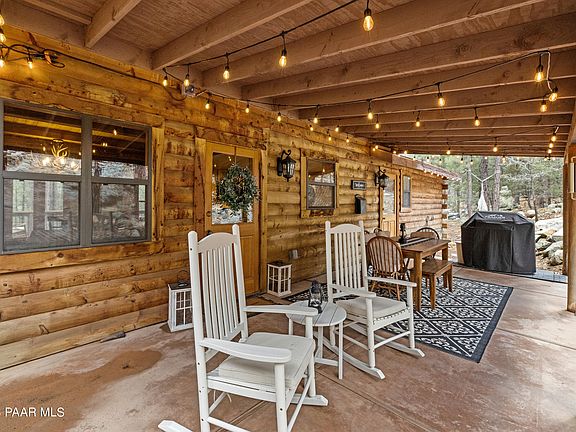 SO CLOSE & YET FAR REMOVED... THIS IS A NATURE-LOVER'S PARADISE... LOOKING FOR A COOL SUMMER & SNOWY WINTER GETAWAY, COZY VACATION HOME OR FULL TIME RETREAT? BRING THE WHOLE FAMILY & FRIENDS. WHAT A GREAT OPPORTUNITY TO OWN THIS UNIQUE & WELL MAINTAINED LOG HOME SITUATED ON 2 ACRES IN THE BEAUTIFUL PINES OF PRESCOTT. USED AS A SUCCESSFUL AIRBNB / VRBO LAST YEAR, THIS (2) LARGE BDM'S W/2 BATHS CABIN, OVERSIZED MASTER ON MAIN & LOFT BDM ON 2ND FL, HAS WALK-IN, LRG CLOSETS & LOTS OF STORAGE. THE MAIN LIVING AREA BOASTS TOWERING VAULTED CEILINGS WITH MANY LARGE WINDOWS & RUSTIC STONE FIREPLACE. ENJOY BREAKFAST ON THE TREX DECK IN THE MORNING & STARGAZING AT NIGHT. THIS SECLUDED GETAWAY IS SO CLOSE TO LYNX LAKE AND LESS THAN (7) MILES TO RT. 69 SHOPPING, HOTELS, COSTCO, TRADER JOE'S & DINING.