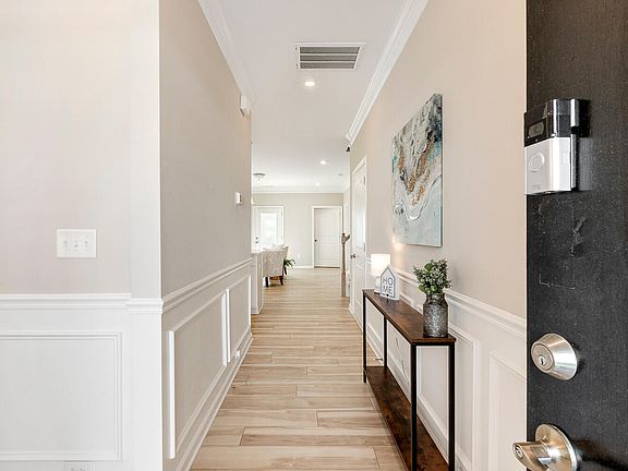 Welcome to your dream home in the charming neighborhood of Legacy Farm! Built in 2022, this stunning residence boasts a bright, open floor plan adorned with luxurious vinyl flooring throughout most of the main level. Step into the heart of the home, where the gourmet kitchen awaits, featuring stainless steel appliances, elegant, crowned cabinets, inviting bar seating, recessed lighting, and a spacious pantry, perfect for culinary enthusiasts. The dining room, enhanced with crown molding and wainscoting, sets an exquisite backdrop for gatherings. Entertain with ease in the expansive family room, which seamlessly connects to the covered back patio, making indoor-outdoor living a breeze. The main floor owner's suite is a true retreat, showcasing a trey ceiling, two walk-in closets, and an en-suite bath complete with a double vanity and a beautifully tiled zero-entry shower. The main level also includes a laundry room and a stylish powder room for guests. Venture upstairs to discover a versatile loft area, a bonus room featuring double French doors, two additional well-appointed bedrooms, and a beautifully designed hall bath. This home is ideally located just minutes from shopping, dining, and offers easy access to The Triangle Expressway, making it the perfect blend of comfort and convenience. Don't miss your opportunity to own this exceptional property - schedule a showing today!