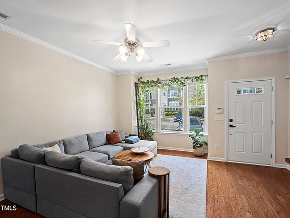 Location! Location! Location! Fabulous 3 Story Townhome in popular Glenwood North - an amenity rich neighborhood close to everything. You'll love the bright and open concept main level with beautiful hardwood floors flowing throughout. Corian countertops, stainless steel appliances, a tile backsplash and ample cabinet space outfit a very functional kitchen. There are two bedrooms on the 2nd floor. One is a large owner's suite with two closets and an en suite bath. The 2nd bedroom has a full bath as well. The basement level is large and versatile. It can serve as an additional bedroom, a second family room, office or whatever you may envision. It also features a 3rd full bathroom, gas log fireplace, and additional flex room. Enjoy the treelined view off of your main level back deck or lower level patio. This home has lots of storage. The community has a pool, clubhouse, and a gym. Great location that offers easy access to Brier Creek, Downtown Raleigh, RDU Airport, RTP, and the key major roadways (40, 440, & 540). $3,000 carpet allowance offered with an acceptable offer.