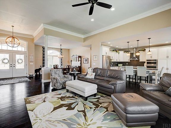 Imagine living in an immaculately well-kept home in the desirable Blue Heron Estates. This rare gem and all its amazing features could be yours. Upon arrival you'll notice the beautiful landscaping and three car garage. Step inside to be amazed at the wonderful open concept with large living room, dining room and wonderfully designed kitchen. Gorgeous hardwood floors flow throughout the main floor with a split bedroom design. The owner's suite boasts a tray ceiling, two vanities and a shower with a rainfall shower head in addition to two other shower-heads. The walk-in closet is also attached to the suite with a separate entrance from the hallway. On the other end of the main floor, you'll find two additional bedrooms with a jack-and-jill bathroom adjoining them. A half bath is also found on the main floor. Step downstairs to find a full basement with over 2,200 finished square feet, a kitchenette, theatre room, two additional bedrooms and another bathroom. There is unfinished space downstairs as well that is perfect for storage or a workshop area. On nice fall nights step outside on your covered back porch.