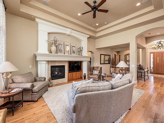 Beau Village community is a cluster of Villas in The Village at Castle Pines, with a distinct style of their own. Surrounded by views, a timeless floor plan and elegant finishes throughout the home. Uncompromising gourmet kitchen, equipped with the quality and beauty provided by Wolf and Sub-Zero appliances and a kitchen nook with an amazing view. The main floor includes cherrywood cabinets, granite counters, wood floors, a living area with a majestic fireplace, oversized windows and views of the open space. Enjoy the master retreat peaceful sweeping views of the open space with access to a cover deck. The spacious master bathroom has dual vanities, an oversized glass shower, jetted tub and custom walk-in closet. Also on the main floor is an additional upper level bedroom and ensuite full bath, dining room, study with built-in cabinets and laundry room. Accented ceiling treatments, art niches, alcoves, ten-foot ceilings in most areas of the main level. In addition, the lower level has a great room with a see through fireplace, bar, media room, bedroom and bathroom. Walk-out from the lower level to a cover private patio. This home sits at the end of a quiet cul-de-sac, backs to open space and is within walking distance of the recreation center, pool, fitness facility and specialty shops. 3 car heated garage with cabinets for storage. Large storage room in the lower level over 800 sqft. which could be converted into a additional bedroom and bath. Everything you need is on the main floor with additional living space on the lower level to enjoy when needed. You'll appreciate knowing your landscaping is maintained by the homeowners association, allowing you the flexibility to leave your home at a moment's notice. Come to Castle Pines and enjoy the beauty of Colorado. A 3D Matterport Tour is available for detail view of this home.