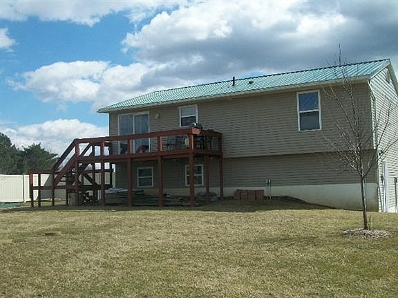 Nice bi-level home on 4 acres just south of New London & close to the New London Resovior. 3BR, 1.5 bath, 2 car attached garage. Dining/kitchen combo with sliding door to back deck. Large utility room on lower level plus 12x19 room that walks out to the 2 car garage. Vinyl sided w/a nice metal roof.