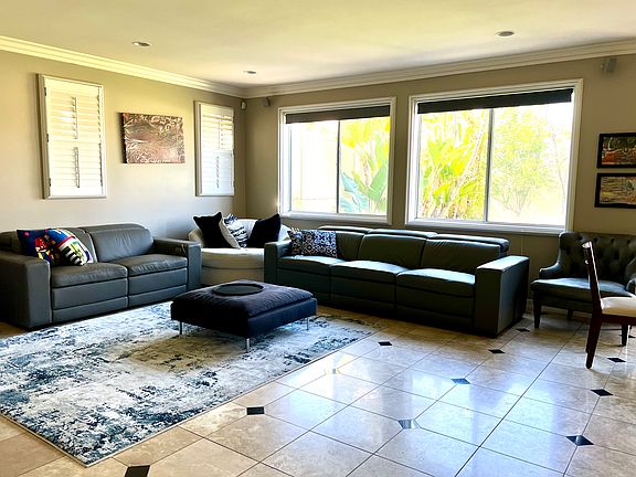 This exquisite home is available to Rent immediately. Showings by appointment. This beautiful custom home exudes quality & grandeur the moment you enter with vaulted ceilings, spacious hallways & dramatic curved staircase. Amenities include travertine floors with black granite inlay downstairs, hardwood Floors, wood laminate flooring upstairs, generous sized rooms, great room feel for the kitchen / family room. Chef's kitchen with plenty of counter space & storage, large walk-in pantry. Located in award winning school districts & super convenient location with everything you would need within minutes of this home. HOME FEATURES INTERIOR & DESIGN 5+1 BR 4.5BA floor plan 6th large bonus room downstairs Real Hardwood and tile flooring Huge Vaulted ceilings, open layout Large connected open kitchen and living space Additional formal living and formal dining areas 1 Bed and attached bath downstairs (Fully Remodeled) Upgraded modern powder room 4BR 3BA Upstairs Upgraded white kitchen cabinets Large walk-in pantry Recessed lighting Ceiling fans Fresh Paint on walls throughout Under stairs closet shelving Huge Master BR with large walk-in master closet Huge Master bath with large soaking tub as well as large walk-in shower 3 Decorative Fireplaces in Living areas and Master BR High-quality metal garage cabinets SPECIAL FEATURES 24 Solar Panels (No electric bill!) Smart ring security system on all doors and windows with 3 outdoor cameras and ring doorbell (extra $30 per month to turn on live cameras and security system) Nest WiFi thermostats Tesla Wall Chargers (NEMA 14-50 and 10-30) in garage One-touch Electric blinds in family room and kitchen Wifi controlled Exterior Post Lights and Irrigation System Stainless steel kitchen appliances (fridge, dishwasher, range hood, gas stove, built-in Double oven, microwave) EXTERIOR FEATURES Large landscaped fenced-in green backyard 12 Beautiful tall palm trees Backyard Barbecue for grilling Fully automated Sprinkler Irrigation system in front and backyard (B-Hyve WiFi controllers with Phone App) 3 Car covered garage with extra storage and EV chargers Wifi controlled and motion sensing Exterior Post Lights MAJOR SYSTEMS & UPGRADES Goodman Gas furnace for central heat (upstairs and downstairs) Bryant Trane AC Unit (upstairs only) 50 Gallon Gas water heater and Recirculating pump High efficiency Samsung Washer and Dryer 24 Solar Panels (No electric bill!) High-efficiency kitchen appliances 12-month Lease required Tenant Responsibile for all utilities No Smoking Pets upon Approval Landscaping maintenance will be provided by the owner
