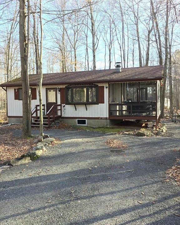 This Country Ranch Home offers 2 Bedrooms and 1 Full Bath. Open floor plan shares Kitchen, LR and Dining area. LR has huge bay window that pours in the sunshine and a wood fireplace for those chilly nights. Bright and comfy Home with sliders off Kitchen to your 20'X 12' screened in porch to keep the buggies away! Bedrooms have carpeting and the Full Bath has tile floors with Tub & Shower. Store some of your toys in the Shed. JUMP ON YOUR GOLF CART, MEET YOUR NEIGHBORS AT THE LAKEFRONT LODGE, SIP YOUR COFFEE IN THE LOUNGE, WORKOUT IN GYM, SHOOT A GAME OF POOL! Be proud to Own a piece of Pocono Mountains Real Estate and call this HOME! See you at the Bonfire!!