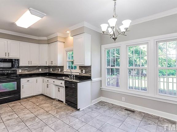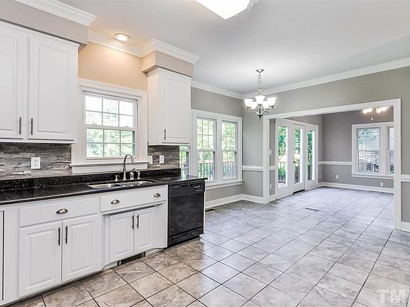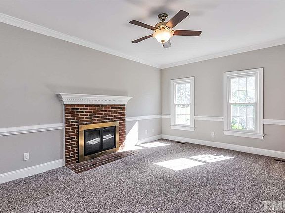 This Knightdale two-story home offers a deck, hardwood flooring, a fireplace, a kitchen pantry, granite kitchen countertops, a walk in master closet, a master bathroom with separated step in shower and tub and dual sinks.