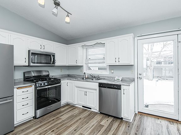 Move right into this 4 bed / 2 full bath home with great cul de sac location and oversized 2-car garage. Awesome floor plan with three bedrooms together on the upper level, plus a newly refinished lower level with 4th bedroom, den and spacious family room - perfect for a roommate or guest. Many updates including new stainless appliances, newer furnace, hot water heater, carpet/flooring, & fresh paint. Backyard is fully fenced and ready for your pets!