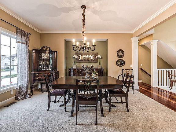 Custom built Bob Buescher home situated on a beautiful PRIVATE cul-de-sac lot. This 1 and 1/2 story, open floor plan includes: Master bedroom on the main floor with 3 bedrooms and (2 bathrooms) upstairs, and 1 bedroom (1 bathroom) in the basement. Gorgeous Brazilian cherry hardwood with white woodwork throughout home. Stainless steel appliances in the spacious dream kitchen. Hearth room is the heart of the home where everyone in the family gathers. The large daylight basement features a custom bar and plenty of space for entertaining as well as lots of storage space. The neutral decor makes moving in effortless. Brand new roof and gutters (Summer 2020).