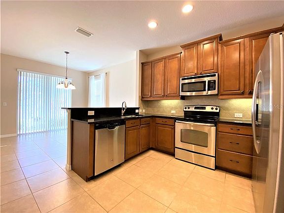 MILLENIA PARK ~ GATED COMMUNITY! Fabulous opportunity in this 2013 K. Hovnanian-built home with SO much to offer the fist time homebuyer or second home/vacation homeowner. The lovely stone accents and paver walkway will welcome you home to this lovely, upgraded popular plan featuring tile in all the main areas (great room, kitchen, dining room, and baths) and GROUND FLOOR MASTER SUITE. The spacious kitchen boasts 42" walnut-finish cabinetry w/crown molding detailing and under-mounted ambient lighting, custom tile-work backsplash, stainless appliances, granite counter tops, ample storage space, pot drawers, and closet pantry. The kitchen is OPEN to the dining area which leads through sliding glass doors to the lovely back patio and private, fully fenced and pavered yard area. There is also a powder room downstairs and inside utility room. The downstairs ample master suite boasts an en-suite bathroom with dual sinks and walk-in shower. Upstairs are two additional, spacious bedrooms and bathroom. LOCATION, LOCATION, LOCATION in this gated community with wonderful amenities such as community pool, playground, and recreation building. SUPER close to Dr. Phillips restaurant row, all the nearby attractions (Universal Studios, Millenia Mall, Disney, I-Drive) and literally just a few minutes onto I-4, leading to the airport and downtown for ease in commuting. TRULY an exceptional home at an exceptional value!