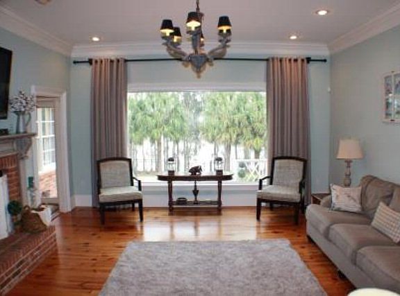 THIS CUSTOM BUILT, LAKE FRONT, home feels like an exquisite SOUTHERN RESORT with beautiful landscaping and palm trees. Whether you sit by the huge picture window watching the sunset or, enjoy the sounds of nature from the multi-level deck, relax in a lounger next to the large, SALT WATER GUNITE POOL with OVERFLOWING SPA, or drop a FISHING line off the 10x16 ft. DOCK nestled among mature cypress trees on the 225 acre lake, this home has it all. This home has privacy and is quite on a dead end road in a great neighborhood. It's full of custom features like heavy crown moldings, thick judge's panels, southern pine wood floors, split brick flooring, & bead board ceilings. Even the garage is paneled in cypress and under the home has tons of storage for tools. On the main floor through the double entry doors, you will find a large formal dining room, great room with fireplace.