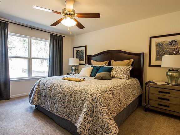 Welcome to Sunset Village. These homes have traditional 8' ceilings, vinyl flooring throughout, quality paint on walls, and a standard Frigidaireappliance package The features of this Cali floorplan include: Vinyl flooring throughout the common areas, durable laminate counter tops and beautiful cabinetryin light and bright tones in kitchen and bathrooms, Nickel hardware on interior doors, carpet in the bedrooms. Appliances include, a stove, microwave anddishwasher. This floor plan has a open kitchen with island to a living and dining area. Two bedrooms are just off the foyer and have a shared bath. Bedroom 1 issituated at the back of the home and has a bath with garden tub, separate shower, dual vanity sinks and large walk in closet.