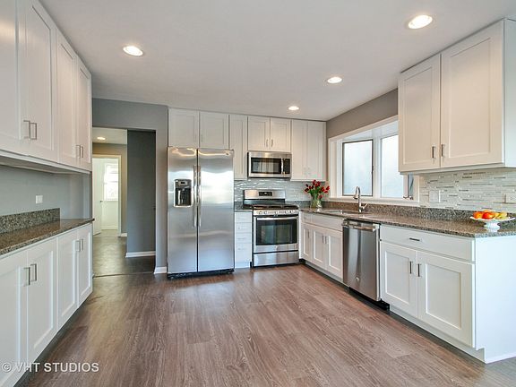 Beautiful, recently updated a single family home for rent in walk-to everything location! Impressive eat-in kitchen with white cabinets, granite counters, stainless steel appliances & mosaic tile back splash. NEW in 2018: Roof, windows, floors, doors & light fixtures. Two totally remodeled baths. There are 2 bedrooms on main level & 2 bedrooms upstairs. Large finished basement has rec room with wet bar, 5th bedroom, full bath & steam room. The laundry room has newer washer & dryer. Attached 2 car garage leads to breezeway/mud room with skylight & access to backyard. Plenty of additional parking on oversized driveway. Enjoy private yard with patio & grill. Walk to schools, bus, parks & Old Orchard Shopping Center. Easy access to I-94 Hwy. Minimum 1 year lease, or a long term lease. Pets OK with additional monthly pet rent. Lawn care included in rent. Available August 2nd.