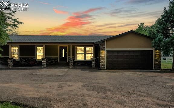 Welcome to ranch living right in town! If you are looking for an equestrian area in town, zoned for up to 4 horses, or you just want a lot of extra elbow room and outbuilding for your business, hobby, RV or other vehicles, look no further! This is a rare find on almost an acre in the coveted Rustic Hills area where properties rarely come on the market. While others drive 30 minutes to get acreage, you can be relaxing on your covered front porch! Only about 20 minutes maximum from anything in town, and just minutes to the Powers dining, shopping, and entertainment corridor, you can live your dream life-without the nightmare commute! This spacious rancher has been remodeled top to bottom with the latest high-end finishes. New blinds, Luxury Plank vinyl through out, smart GDO, ring doorbell, new "blingy" light fixtures throughout! You'll love the cook's kitchen with gleaming higher end appliances, exotic distinctive high-grade countertops and island, and gas range with designer hood vent. The dining area, kitchen and family room are all open for optimum entertainment possibilities. The family room has a fireplace, and walks out to sunroom. From the dining room you exit onto the high-end covered composite deck that overlooks your kingdom behind the home. The master bedroom suite has a 4 piece luxury bath with large walk-in shower. All baths have been beautifully updated with high-end finishes. The walk-out basement has spacious bedrooms and an additional 33 foot long family room. There is a possibility for 6 bedrooms in this home. Outside you will a 30x60 building that can be used as a barn, workshop, additional garage space for collectors-what ever your heart desires. There is also a smaller barn/tack room if you are a horse person. A full length stamped concrete concrete patio graces the front of the home, and the huge semi-circular drive makes for easy exits and entries with plenty of extra parking. Equestrian trails adjoin the property, too!