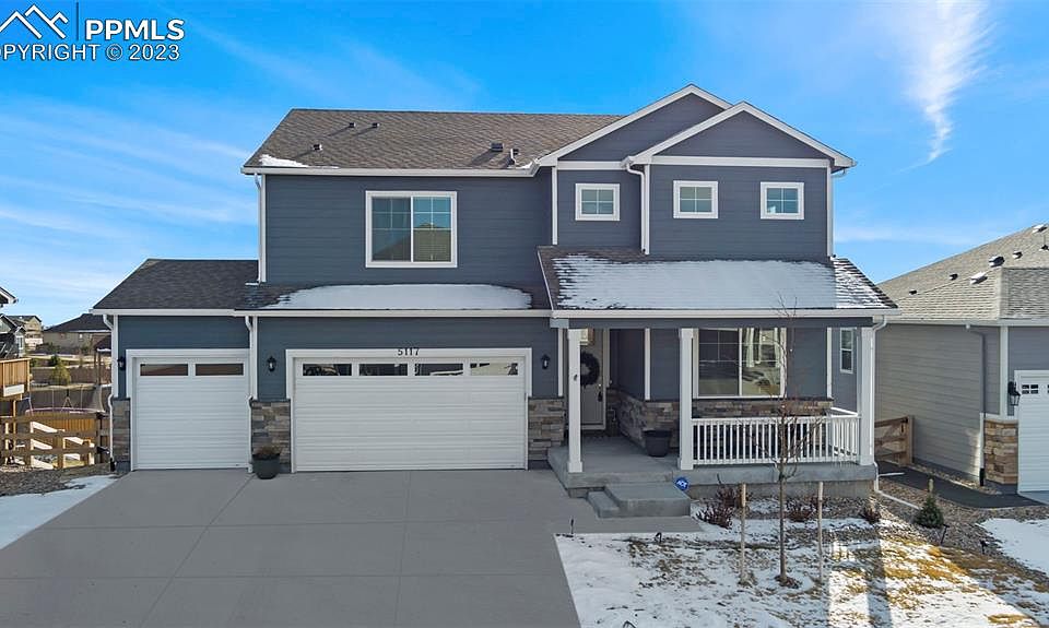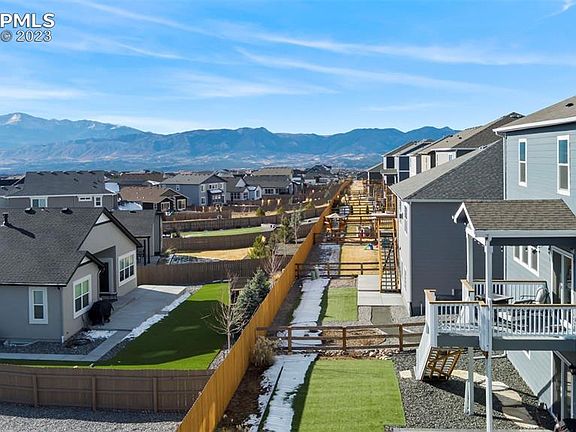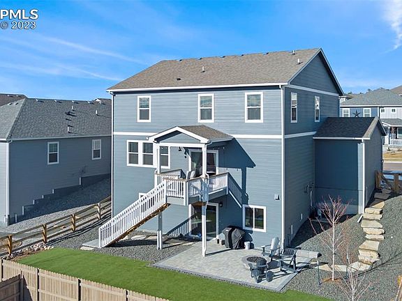 Shows like new at just 2 years old! One owner, meticulously care for and dressed in modern design. Welcoming foyer introduces the main level bedroom and nearby full bath. The open concept living area includes, kitchen with island, dining area and living room with gas fireplace. LVP flooring covers most of the main level. All have walk out access to the back, covered deck. Don’t miss the views, mountains and Pikes Peak! Low maintenance, fenced yard with concrete patio at lowest level. Kitchen features dedicated pantry, granite counters, modern gray cabinetry with room for a barista station! Upstairs a Hugh loft is added to 4 bedrooms! Most are oversized and have walk in closets. The laundry area is on the upper level (near the bedrooms). Primary suite is immense! The bath and walk in closet match it in size! Unfinished walkout basement features a bathroom rough in, room for a family room and bedroom. Three car garage and this supreme location gives you the benefit of the best schools, shopping and entertainment.