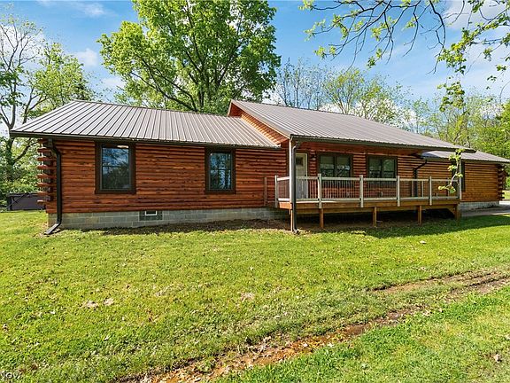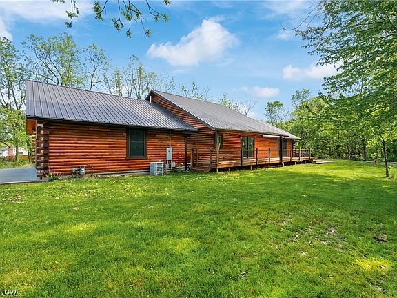 Exquisite craftsmanship to be found in this one of a kind log ranch home! Built new in 2019 on nearly 4 acre wooded lot in Green School District! Large 1,200 sq.ft. two story barn with full basement, second floor bonus room, separate meter, plumbed for bath - previously the original home on property. Home sits back far from road with ample parking and circular driveway. Two car attached garage w/ 9ft door. Stamped rear patio. Two covered porches on front and back of home accessed off of eating area and master bedroom. Metal roof with 6 inch seamless gutters and guards. Entering the home you are immediately surrounded by inviting eastern red aromatic cedar- 6x8 walls! Open concept living, kitchen and dining areas with vaulted ceilings. Gourmet kitchen offers granite counters, stainless steel appliances and breakfast bar. Dining room has beautiful antique massive chandelier - over 100 years old. Sliders to back porch. First floor laundry- washer and dryer convey. Three bedroom and two full baths. Master bedroom bath has double vanity with granite and customized tiled walk-in shower. Full 13 course basement is partially finished with cedar ceilings, carpet and vented gas block windows. 200 amp breaker service, high efficient furnace and hot water tank. Gas royal rights convey with free gas hookup on property. A truly exceptional and unique home you would be proud to own!