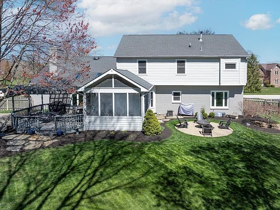 ICONIC CURB APPEAL + METICULOUSLY UPDATED & MAINTAINED + FINISHED BSMT + SOUGHT-AFTER AVIAN GLEN CARMEL COMMUNITY = PERFECTION. Fully updated home situated on CUL DE SAC boasts 4 bed, 2 full bath + 2 half bath. Main level features HARDWOODS throughout, dedicated OFFICE, beautifully updated kitchen w/ gas range & newer appliances, great room w/ built in bookshelves, GAS FIREPLACE, VAULTED CEILING & SKYLIGHTS provide so much natural light. Second story features new carpet throughout, 4 bed & 2 full bath - including primary bath with FULL BATH REMODEL: WALK IN SHOWER, tub & walk-in closet; also note - XL CLOSET in BR 2. Basement is fully finished w/ large living space, flex/office/workout room, 1/2 bath & storage room. The outdoor living space has it all! Enjoy the screened THREE SEASONS ROOM, FULLY FENCED backyard, second patio w/PERGOLA, BASKETBALL court, upgraded landscape in front & back, exterior UPLIGHTING on home & 3 CAR GARAGE. Home owner pride throughout the home, meticulously cared for - on the interior and exterior. High Efficiency Trane Furnace (2018), AC (2018), Windows (2023), Water Heater (2020), Water Softener (2020), full kitchen remodel, half bath added in basement, new carpet and flooring throughout - more than $225k in owner upgrades. Avian Glen community boasts neighborhood pool, tennis/pickleball, 2 ponds, social events & footpaths to Cherry Tree Elementary. This is the rare home you wait for - it checks all the boxes. Welcome Home!