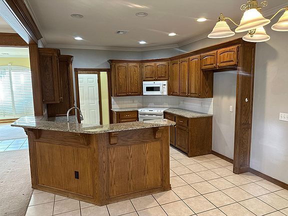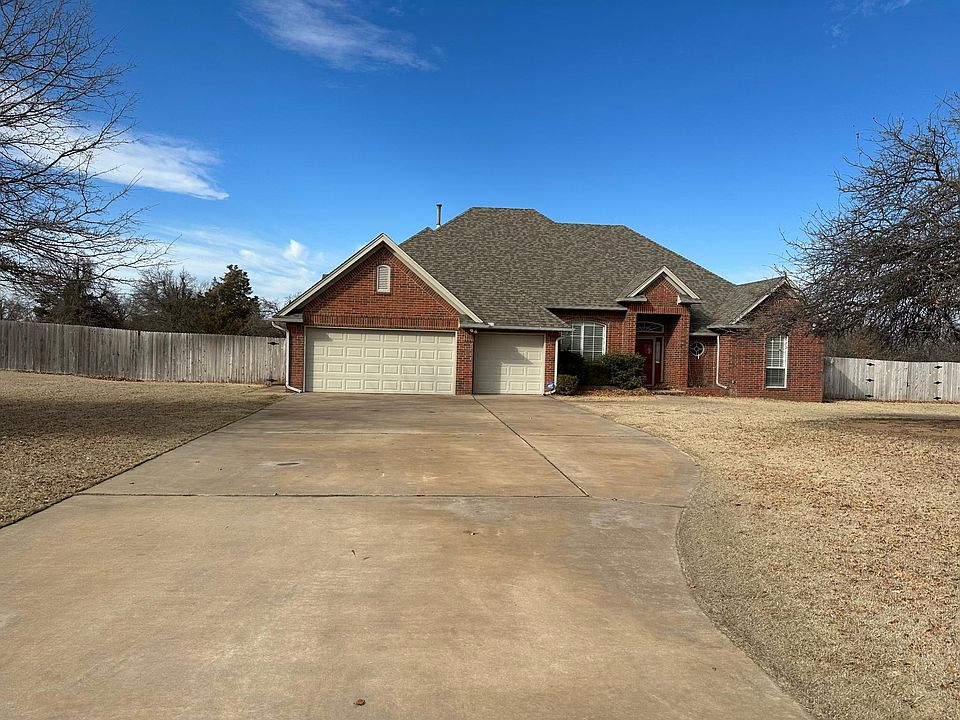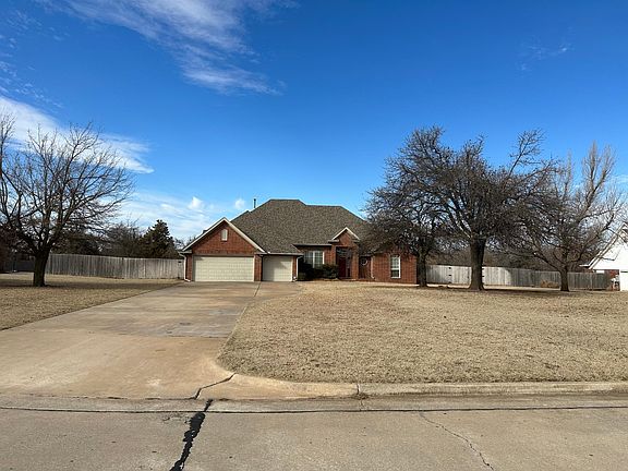 Beautiful spacious 4 bd, 3 full bathrooms, master bedroom w/jacuzzi, shower and walk-in closet; 2 bedrooms with jack/jill bathroom and 3rd bedroom with separate bathroom. Newly painted neutral colors that will complement all furniture choices. Spacious living, dining and breakfast-nook area. Modern kitchen, with granite counters, roll-out pantry shelves, large electric stove with oven, dishwasher, overhead microwave and double sink. Outside: Large deck and above ground swimming pool sitting on one (1) acre of land, fenced with manicure lawns both in the back and front of the yard. In ground sprinklers and Cul-de-sac. Three (3) car garage, w/recent storm shelter built in. Located two (2) minutes outside of TINKER AFB Prominent district schools: Barnes Elementary and Carl Albert middle/High school. Three (3) minutes to St Vincents ER; Famous restaurants and shopping area with brand name stores. None
