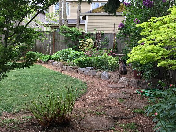 Open floor plan Stainless Steele appliances Mature garden Gardeners dream
