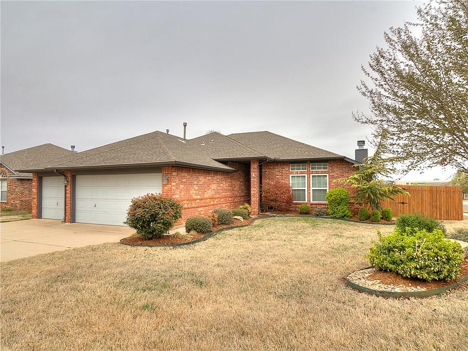 Just gorgeous home on a corner lot! In close proximity to Tinker AFB, the heart hospital, and shopping. Easy access to I-240. This home has many extras including australian pantry in kitchen, australian closet in the large master bedroom, extra large storm shelter in garage, and an oversized back patio. Kitchen is equipped with granite countertops, island w/ breakfast bar, stainless steel appliances, wine fridge, gas stove, and australian closet. The master bedroom suite is large enough for an office space or sitting area. Master bathroom includes tiled shower, double vanity, jetted tub, and an australian closet. You will love relaxing on the extra large concrete stamped back patio. Electricity connection for a hot tub runs under the patio. Sellers replaced windows in 2016 and replaced the AC and water heater in 2017. You will want to jump on this well maintained home!