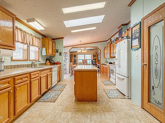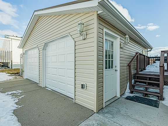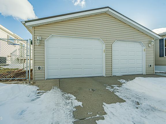 Check out this wonderfully laid out double-wide in Century Park with detached 2 stall garage and fenced yard. Both decks have recently been stained and a new deck added off the backdoor. A new chain link fence has also been installed. The garage door has been expanded to allow wider trucks to park and much more. Inside you'll walk into a large entryway, huge kitchen, dining and a bonus room that could be another living room or office. Through the living room with a gas fireplace you'll find the large primary suite with walk-in closet. The other two bedrooms, full bathroom, and large closet can be found opposite. This home is in great shape with a steel roof and low maintenance siding, skirting and fencing so you can relax and enjoy the home. Call your favorite agent today.