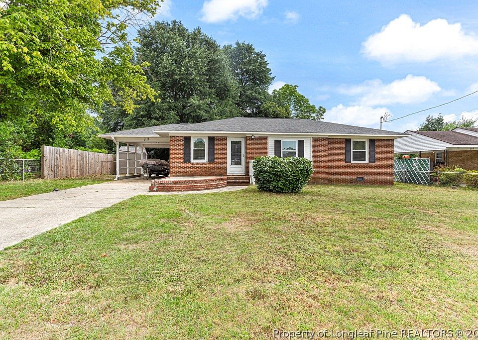 Welcome to this beautifully updated home, perfectly situated in the heart of Fayetteville and just minutes from Fort Liberty. This charming brick ranch offers a blend of modern updates and timeless elegance that will captivate you from the moment you step inside. As you enter, you'll be greeted by an inviting living room where comfort meets style. The original hardwood floors exude warmth and character, while built-in shelving adds both functionality and charm. The open layout seamlessly connects the living area to the dining room, making it ideal for hosting gatherings and creating lasting memories. The modern kitchen is a chef's delight, featuring stunning granite countertops, a sleek white subway tile backsplash, and brand-new stainless-steel appliances. This home also boasts a new roof, providing peace of mind for years to come. The exterior is just as impressive, with a spacious, well-maintained yard perfect for outdoor activities, and a convenient carport for added functionality.