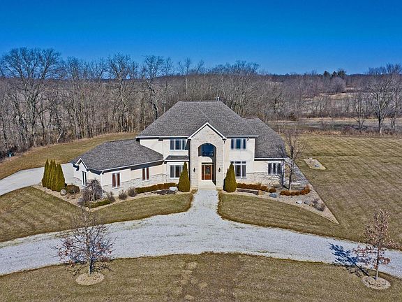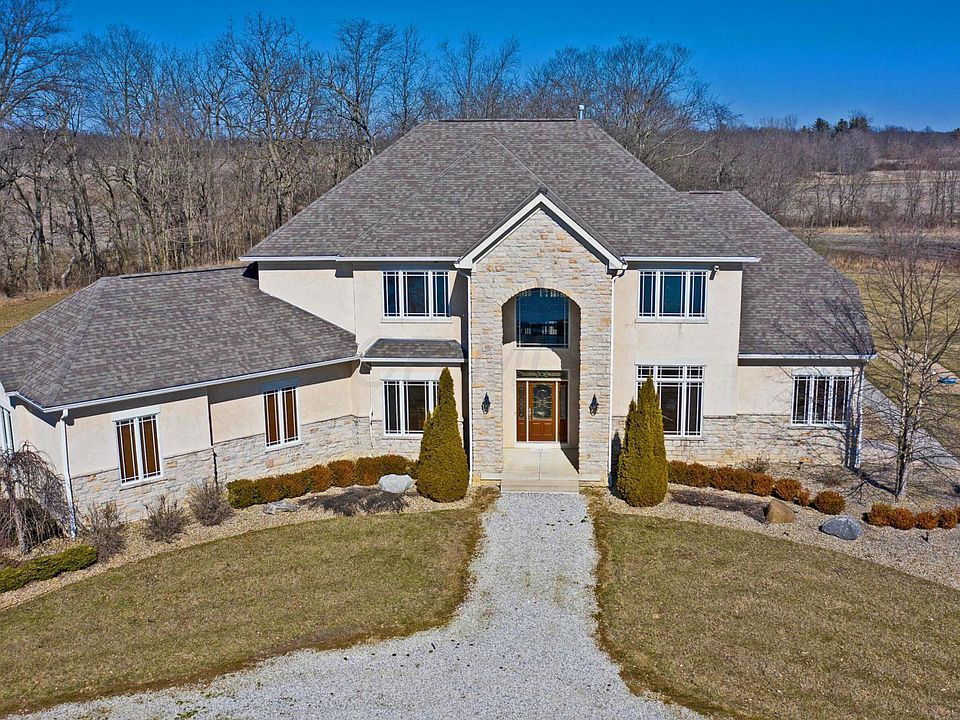 Quality abounds in this amazing home in the country that backs to Little Walnut Crk & w/i minutes of Rte 71&St Rte 61. Enjoy your little ''estate'' complete w/entry gatehouse, circular drive, pond, entertainment size stamped concrete patio w/Tiki bar, masonry outdr fireplace&deck! Expansive 2 story foyer w/den (blt in bkshelves) & DR. Great rm w/FP & built ins w/wall of windows overlooking rear patio area. HUGE kitchen/gathering area w/bar seating, island, super large eat in area w/tv cabinet area & sun room! Windows everywhere! First flr owner's suite w/large en suite & lounging nook! Up has 3 bedrooms/all w/big closets & their own baths! About 2600 sq ft finished in LL w/2 egress windows, 18 seat theater, 1/2 bath & custom bar! Two HVAC sys, 2 electric panels&2 sumps! See Ag2Ag Remarks!