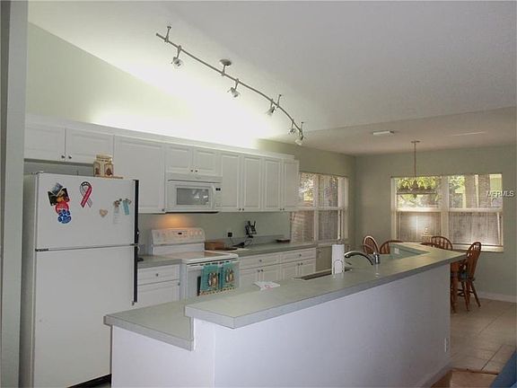 This home features hardwood floors in the great room and dining room ,laminate floors in the bedrooms, and ceramic tile in the kitchen and baths. All New kitchen cabinets , appliances and counters in the kitchen. Nice sized kitchen with large breakfast bar area for your guests to keep you company while you prepare food in the kitchen. Eat in space in kitchen for a table. Formal dining room separate. Great Room floor plan with vaulted ceilings and doors to the screened lanai. Large private fenced yard with mature trees . Remodeled hall bath with new tile in tub & new vanity. Mater bath features double sinks and a walk in shower. Newer tile floor, new vanity and granite/solid surface counter top. Fresh paint inside and outside,Relax on the screened lanai and enjoy the nature.