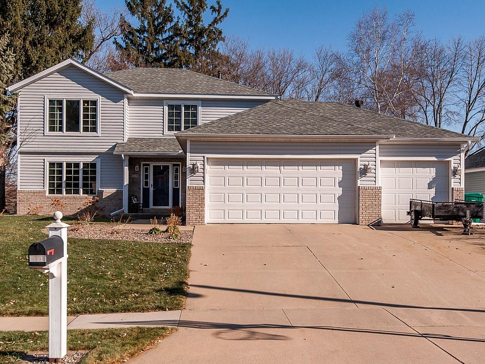 FIVE bedrooms! FOUR baths! THREE garage stalls! TWO-Story with tons of updates and space located on a quiet cul-de-sac in NW Rochester. The main level offers beautiful hickory flooring, a family room with brand new carpet and a stunning wood-burning fireplace, a second family room with beautiful hardwood flooring, a gorgeously updated kitchen with granite tops, SS appliances, elegant backsplash tile, and counter seating, plus two dining areas! The upper level has all new carpet in the four spacious bedrooms (walk-in closets in three) including the master suite with a private bath with shower. The lowest level has another large family room, a spacious 5th bedroom, plus a bonus room with an egress window and closet (use as an office, craft, or toy room or add a door and now you have six bedrooms!), plus a large bath with shower and ceramic tile. Huge mechanical/laundry room with tons of storage space. Large deck, huge patio, and a private back yard! New roof and siding in 2019.