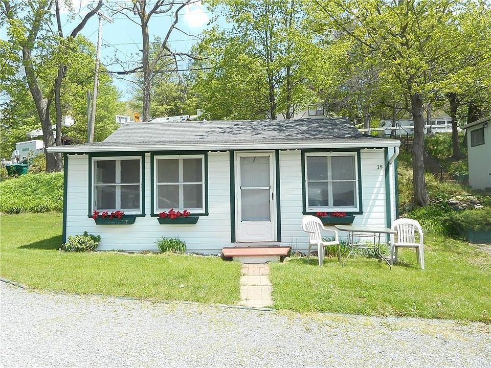 Ready to live on Conesus Lake at a most affordable price? This Sears & Roebuck 1941 Bolt Together Fishing cottage is only YEAR ROUND residence in Sunny Shores Park. Price reflects cottage is currently being renovated & there is still time for buyer to pick final finishes & seller will complete. Or, buyer may purchase at a lower price and complete the work themselves. The Sunny Shores Community features 6 boating & fishing docks, a swimming area, a park like common area w/ parking & coin op laundry. Annual site fee is $8975/year of which $2805 is due at lease signing, followed by a monthly payment of $561 until lease end. Since you don't own the land, there are no real estate taxes to pay! Enjoy waterfront w/out your wallet being emptied or any grass to mow. Just sit & relax.