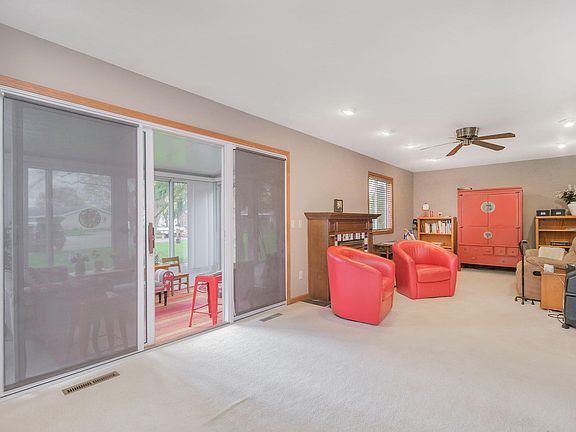Leisure Time condo- handy west side location, close to all amenities. One of the nicest spots in this 55+ Community. Enjoy the shared courtyard with your neighbors in front, and the private sunny three-season room overlooking greenspace in back. This unit features main floor primary bed and full bath, well equipped kitchen with pantry, dining area, and an oversized living room with a gas fireplace. Finished basement offers another full bath and kitchenette - great for guests. Enclosed garage. Low HOA fees cover snow removal, garbage, lawn care, and building exterior. AHS Home Warranty included.