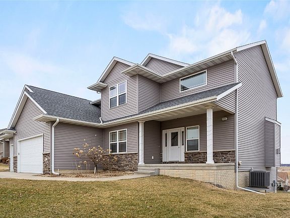 Conveniently located, just off Hwy 30 in the coveted College Farms development and College Community school district, this spacious 5 bedroom home is the one that you've been looking for! Situated high on the hillside of the neighborhood, you will appreciate the scenic views of the Iowa countryside. The open floorplan on the main level includes an impressive foyer, formal dining area, a half bathroom, great room, and a large kitchen, complete with a walk-in pantry, new appliances, breakfast bar, granite countertops, and a glass tiled backsplash. Entering from the 3 stall garage, you will love the drop zone area with built-in lockers, to help keep everything organized. Upstairs are four of the bedrooms, the master en suite features a huge walk-in closet, jetted tub, dual vanity, and custom tiled shower. The walkout lower level features a spacious family room, full bathroom, large storage room, and the 5th bedroom.