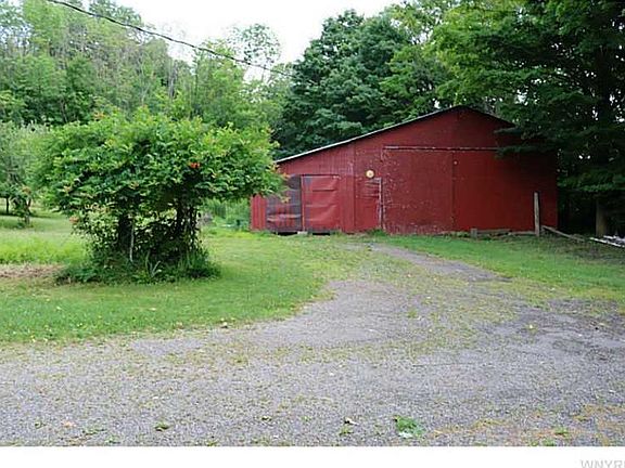 Price Reduced! A solid home on a great poured wall foundation with nice height in the basement area for additional space. Outside is a nice barn with four stalls and hay mound. Side equipment storage area. Established fruit trees, berry bushes and plenty of flower beds to bring back to their former glory. There is a large 20x30 work shop area with lots of windows for natural light and a wood stove. Enter into the first of two one car garage area that both have overhead doors and concrete floors. A covered wood/pellet storage area in attached to the home. Inside is a fully enclosed wrap around porch with sliders all around. The home has a kitchen where the appliances stay open to the dining area. The large 12x20 living room has a pellet stove that does a nice job heating the whole house. A large laundry room, den, two bedrooms and two full baths are all on the main level. The second story is ready for you to turn into a master suite area with a Juliet balcony. Five acres come with the home at this price but 58 total acres is available. Great location for a small hobby farm.