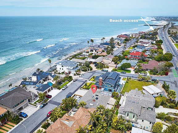 Welcome to this exquisite beach vacation rental with a new rooftop deck and game room in the charming coastal town of Carlsbad, California. This sun-drenched retreat is a stone's throw from the Pacific and features three inviting bedrooms, two luxurious bathrooms, and three distinct outdoor living areas providing expansive space for families or groups of friends seeking a memorable seaside getaway. Step inside to discover a bright and airy living space adorned with coastal-inspired decor, offering a cozy haven to relax and unwind after a day of exploring the nearby beaches and attractions. The gourmet kitchen with modern appliances and corona countertops invites guests to create delicious homemade meals to be savored in the dining area or alfresco on the private patio within earshot of crashing waves. Each thoughtfully appointed bedroom ensures a restful night's sleep, with plush bedding and tranquil ambiance. Get some sun and relax on the new rooftop terrace while watching surfers and sailboats play in the sea. The new large game room has a flatscreen TV, ping pong and shuffleboard tables, plus beach chairs and boogie boards for beach fun. The private backyard features shuffleboard and a barbeque.