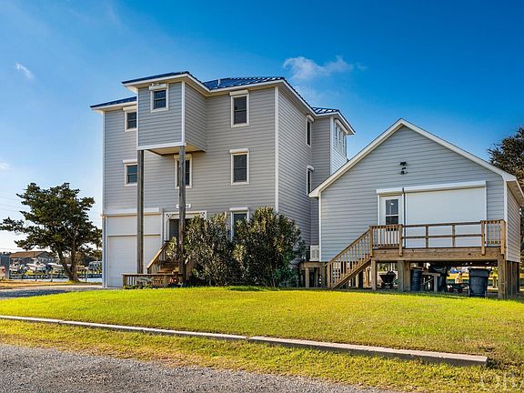 Welcome to 51186 Palmetto Drive located in Frisco on the Sportsman’s paradise of Hatteras Island. Built with pride by the reputable Seth Johnson and sitting on one primo piece of unique waterfront land on a wide bulk headed Canal inside of the Scotch Bonnet Marina all while overlooking unimpeded views of the Canal, Sound and Saltmarsh. Outdoor living is the lifestyle here and the large number of decking spaces offer some the very best Sound side Sunsets that will light up your home carrying with it a great Natural glow through the home’s abundance of Anderson Sliders and Windows. These owners have meticulously maintained this home and designed it to be weatherproof from the Outer Banks weather elements. Offering great curb appeal with greenspace and an attractive Coastal design. A dedicated boat launch is on premises along with a Vinyl bulkhead, boat lift and dock space with fish cleaning station. World class Red Drum and Trout fishing in your backyard while Hatteras Inlet and the gateway to the Atlantic Gulfstream is just around the corner for a huge variety of saltwater fishing and of course the Frisco beaches are just around the corner! Stepping into the front covered Alcove is the first floor which offers a Tiled Foyer, Office, Storage and bathroom as well as an interior door to the Garage and back yard. A motorized chair lift is installed on each level of steps and can be easily removed if desired. The mid-level offers a large En-Suite with dual vanities and dual closets and direct deck access. Two additional bedrooms, one with deck access, a full Hall bath with Tub, Hall Closets, and a dedicated laundry area finish off the second floor. The Wow factor is epitomized on the top floor and offers a reverse floorplan with a Huge Kitchen, Bar, and walk in Pantry. With two living spaces and a dedicated dining room, your time will be well spent here; as its open floor plan, vaulted ceilings with an abundance of Sliding glass doors and Windows show off your homes natural light with its location overlooking miles of premiere water views. The huge deck spaces off each floor have connecting stairwells that allow you to exit the home fully to the ground level and include a covered deck on the top floor for those hot summer days. Too many items to list… some of the recent additions include an attractive Blue Metal Roof designed to withstand hurricane force winds along with Hurricane Shutters installed on all windows and doors including the 16’ garage bay door. The interior of the garage was rebuilt to allow an elevated drive on ramp for two large vehicles to sleep easy during any storm along with multiple storage areas and a dry entry. A new Full size House Generator with three owned Fuel Tanks, Two New 15 Seer HVAC systems with dehumidifiers, Rheem HW Heater, New Appliances (Gas Stove), Two New Chair lifts, New 16,000 pound Boat Lift and Dock as well as a Brand New 592 Square foot Heated and Cooled workshop with a 100 Amp Panel that could offer a multitude of uses including home business, additional living space or workshop. A large majority of furnishings do convey and are available by request. This is the one you will write your story about with a full life of everything you have always wanted. Head and Shoulders above the crowd with a quality build and attractive features. Call me today for your private showing.
